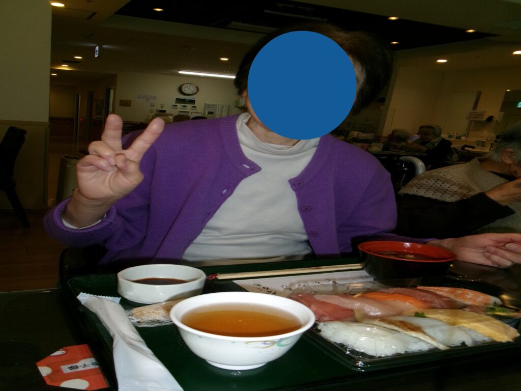 先日、お寿司をテイクアウトし、入居者様に召し上がっていただきました(^▽^)/