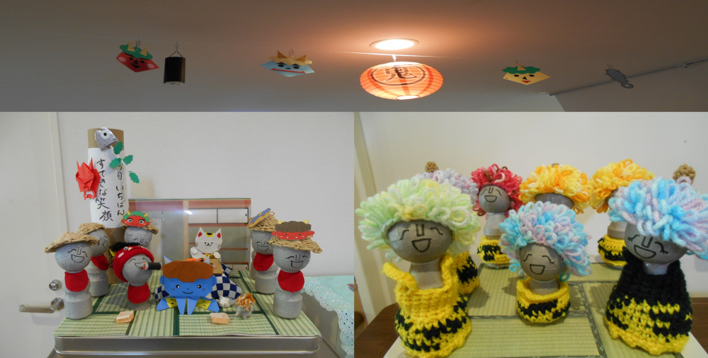 職員による館内展示物♪ こんにちは!(^^)! 介護付有料老人ホーム 青藍の郷 スタッフです!! ご入居様に楽しんで頂くために展示しておりました、今年第二段になります館内の展示物のご紹介をさせて頂きます(*´▽`*) 手先の器用な職員さんが2月3日の豆まきに向けて館内の至る所へ展示してくれました♪ 入居者様が飾りつけを見て 「いやー可愛いな。」「豆まきの季節やな~。」「今年も鬼やっつけなあかんな!!」 と皆様楽しんでおられます!(^^)! 次回は豆まきのご報告をさせて頂きますので、お楽しみに♪ 投稿日 2026.02.09 カテゴリー お知らせ, 行事 走るデパ地下♪ 一覧へ
